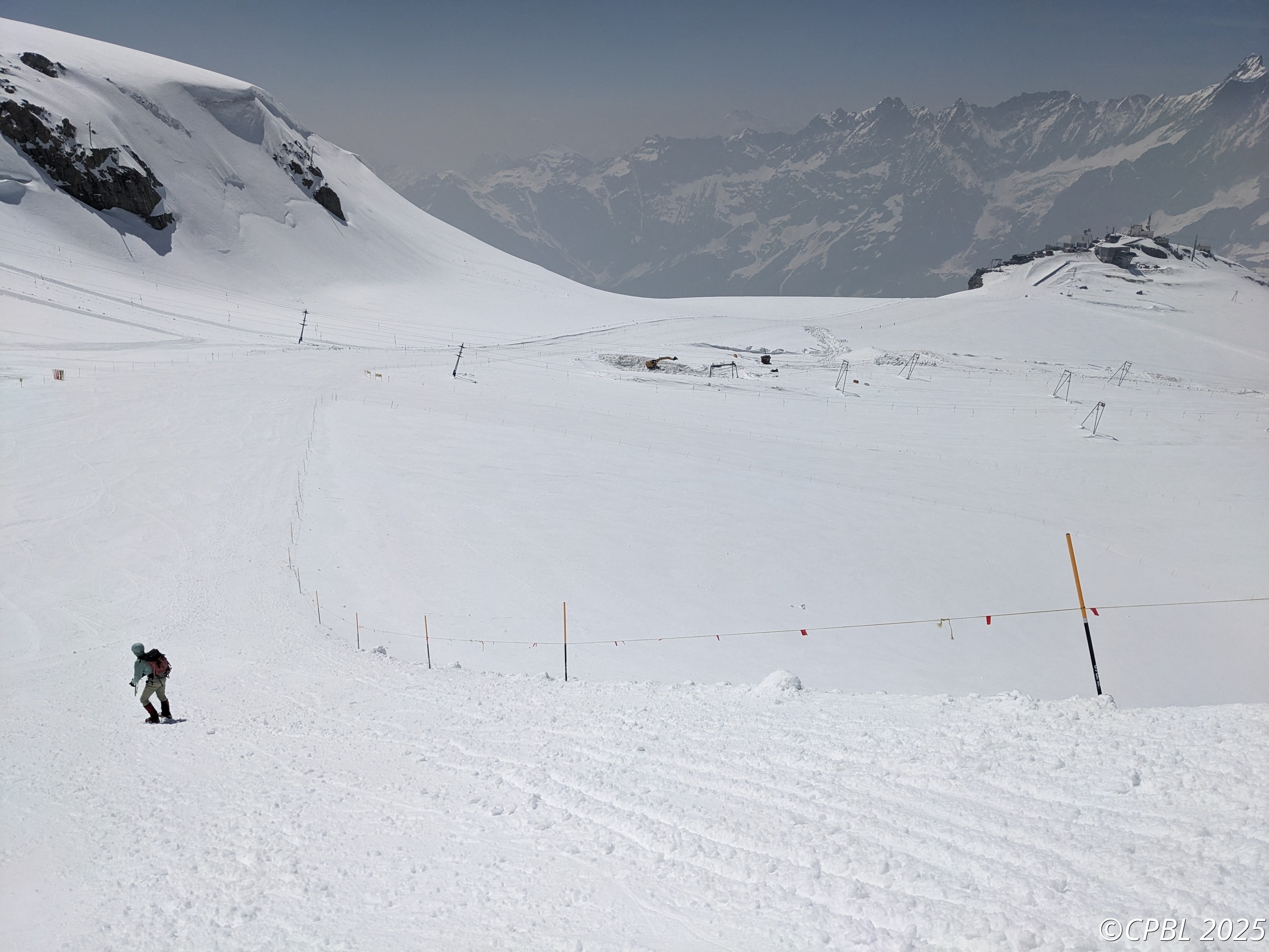 | And industrial mountaineering: we were headed up just 300m more in altitude to the top of Breithorn. Teams of guided groups were at the base and on their way up. |