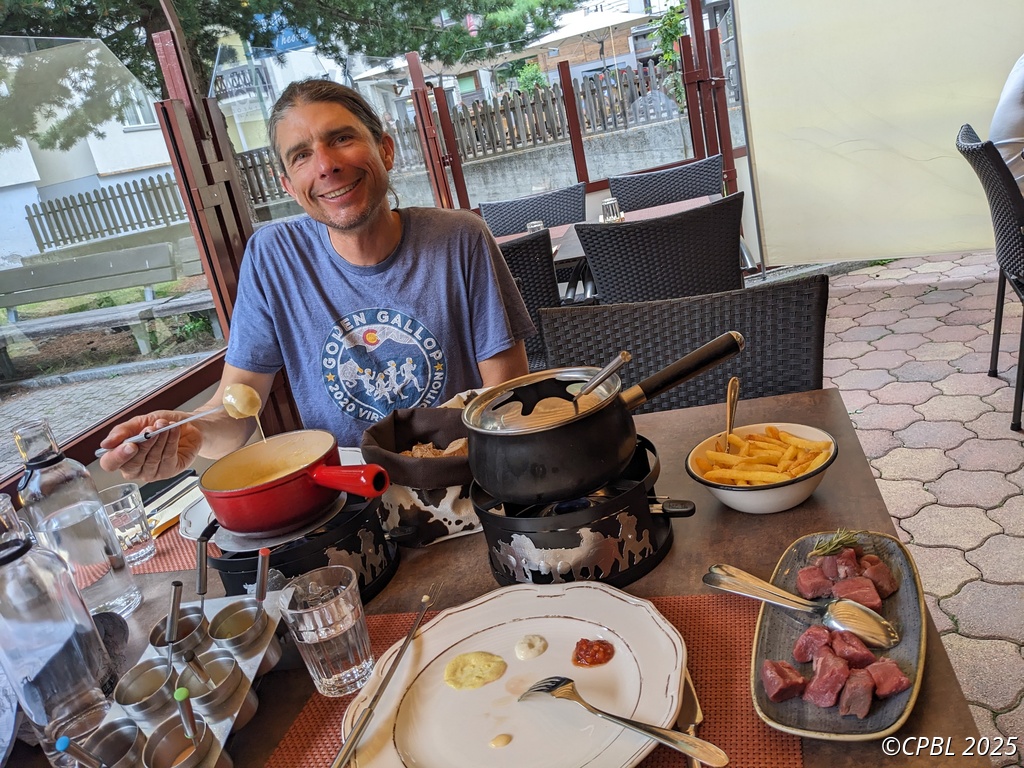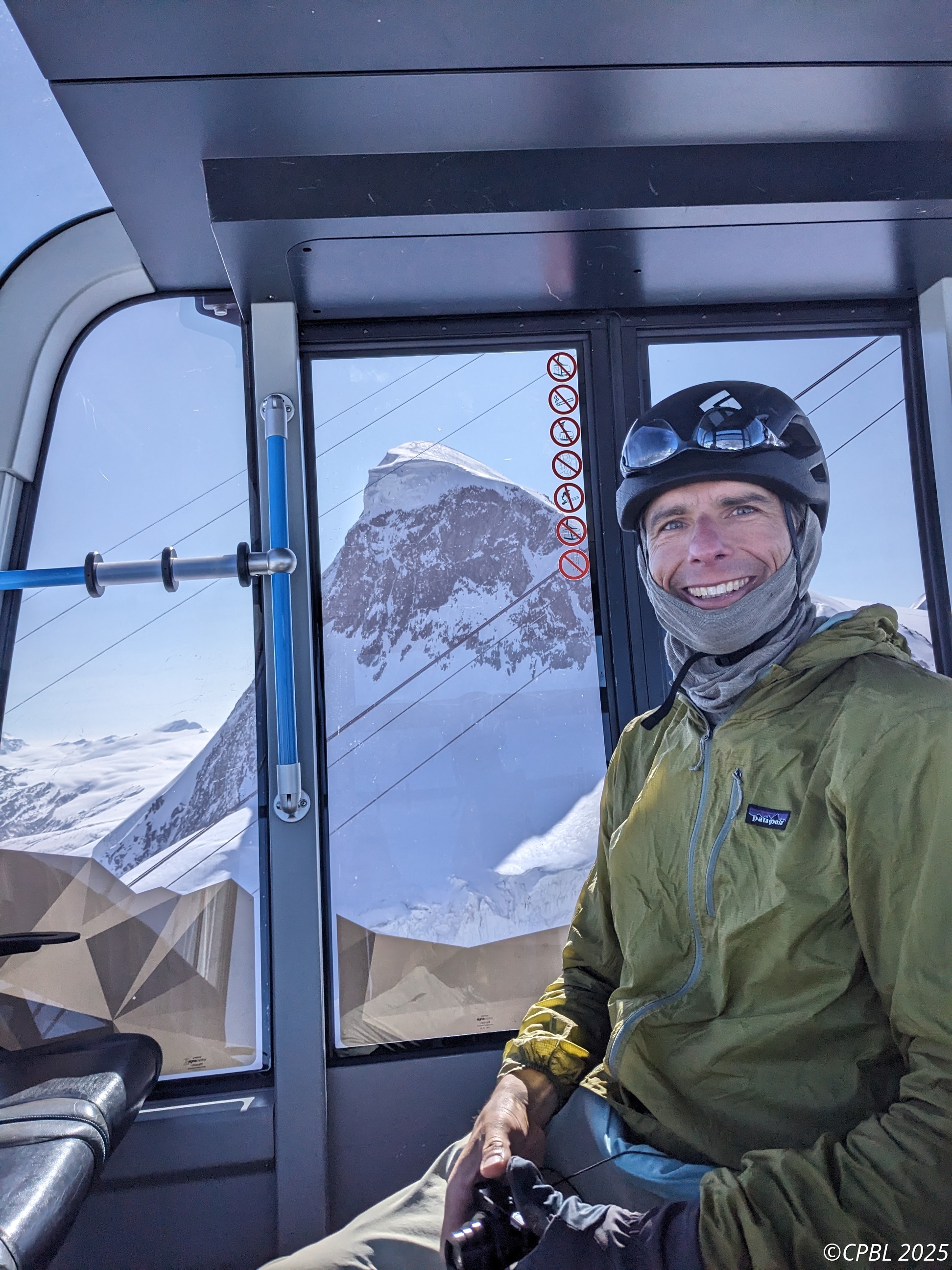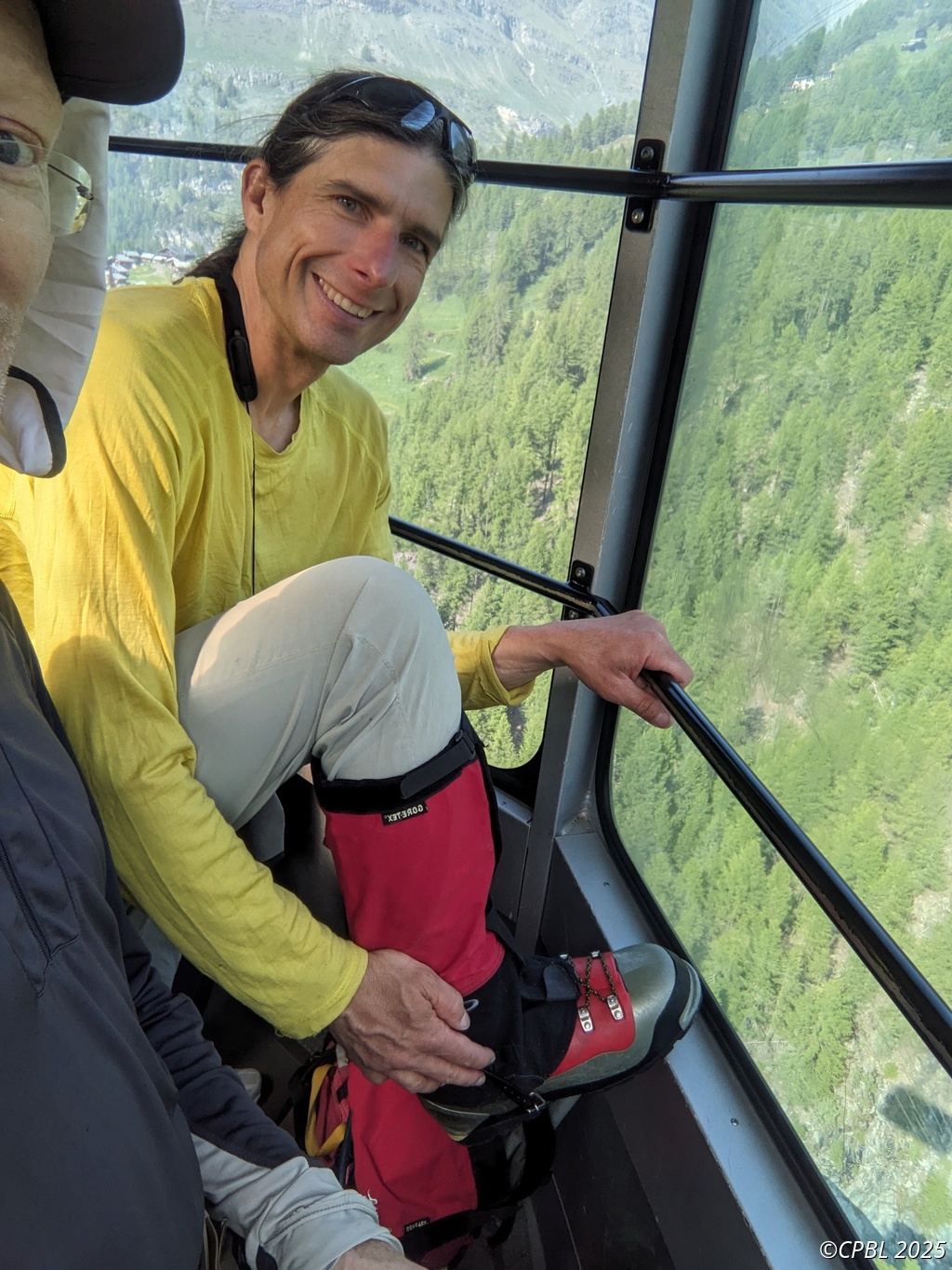 | Bryan acclimatizes faster than me, so my oxygen capacity sets our schedule. After my four-day conference, how much of my acclimatization had I lost? Cable-cars took us from valley to alpine again. |