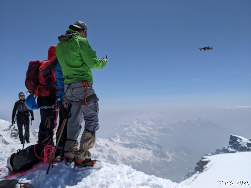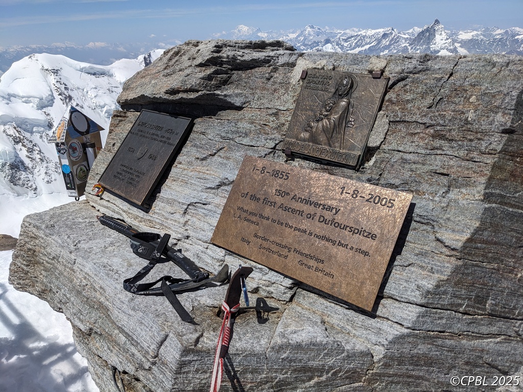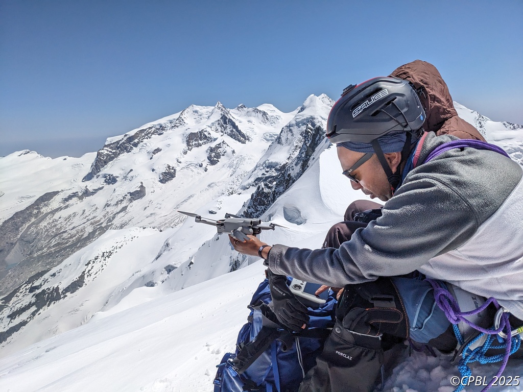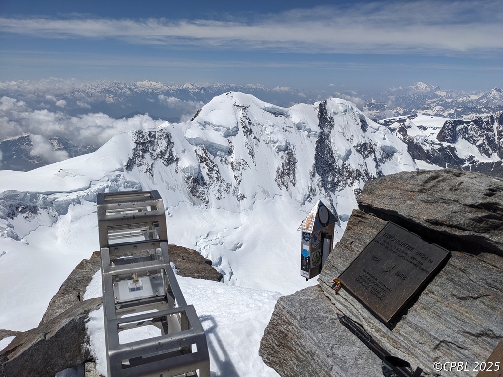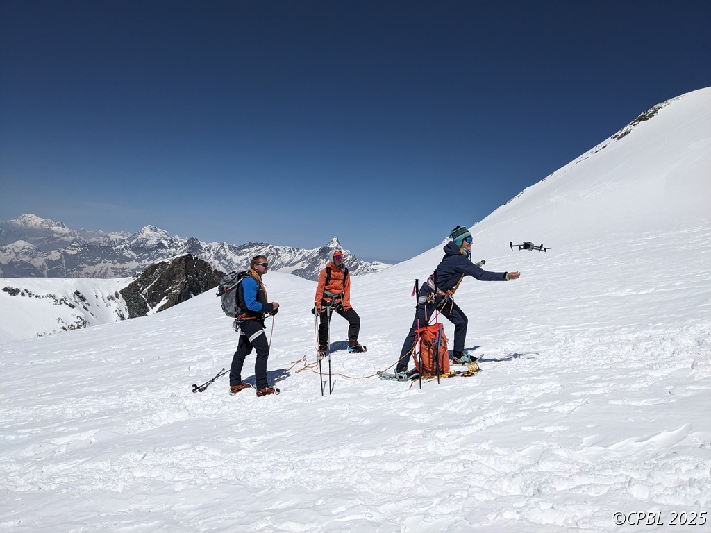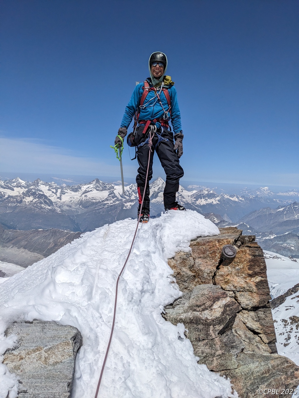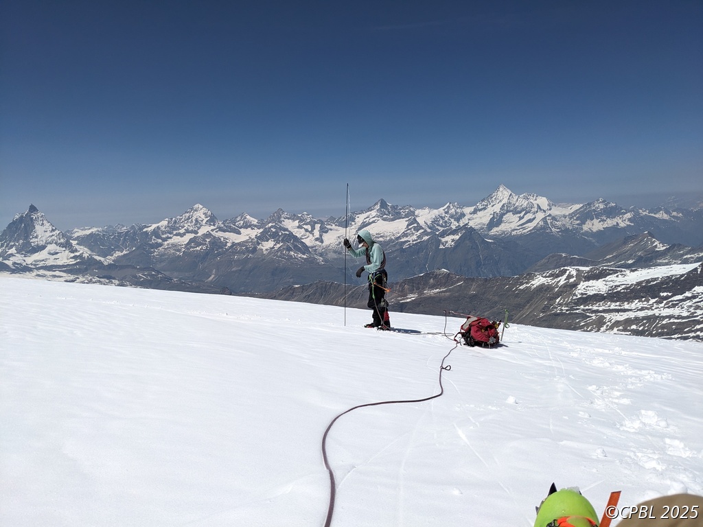 | involves fixed ladders and some batman ropes for a transition from rock to the Gornergletscher. |