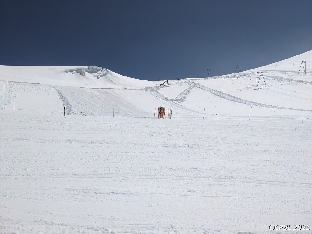 | ... with diesel-powered groomers as well as enormous diggers ... filling in crevasses??! |