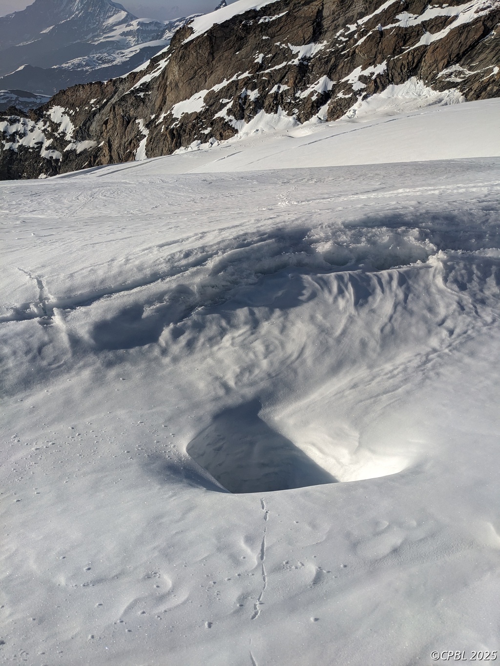 | Few people camp up here, so having a crevasse near camp facilitates an accepted LNT practice, if you see what I mean. |