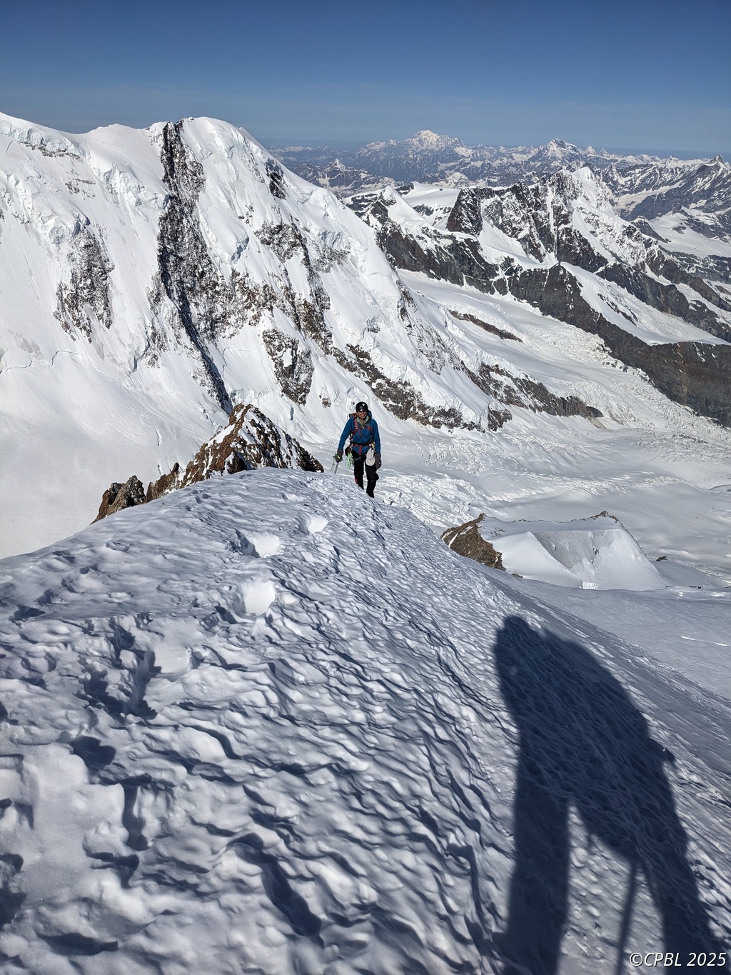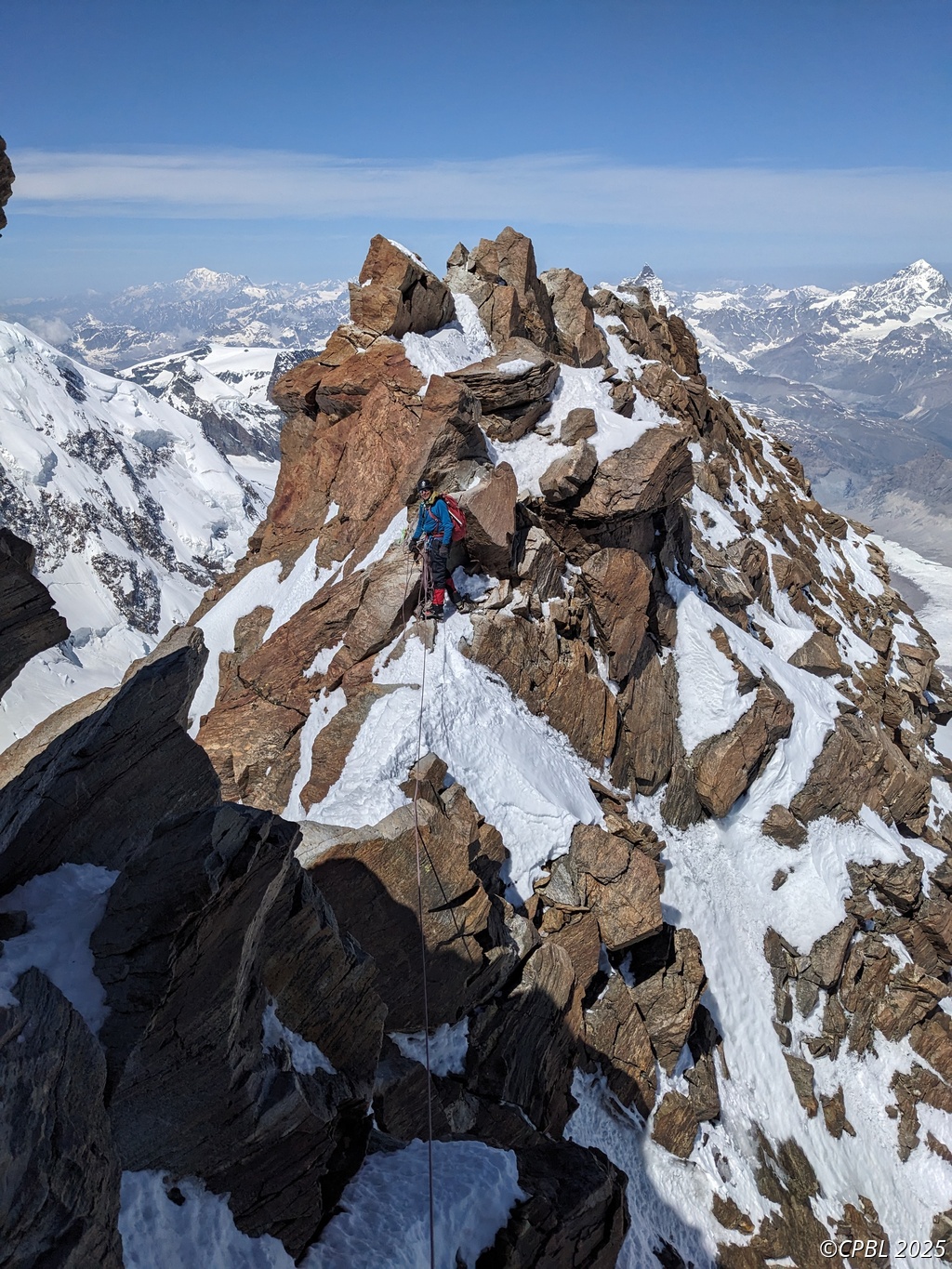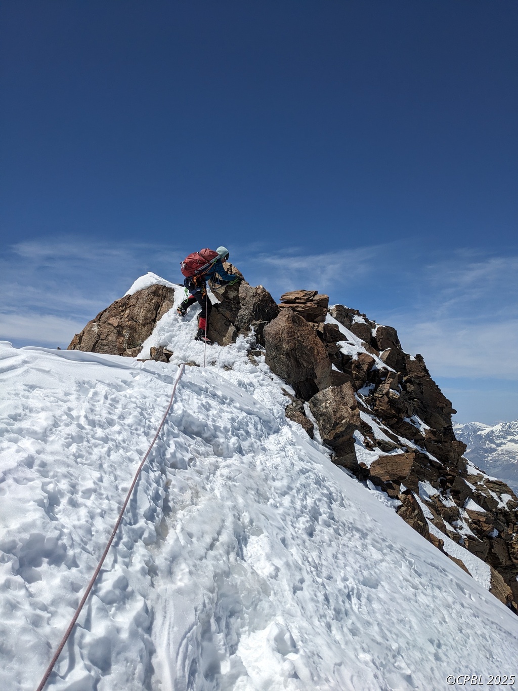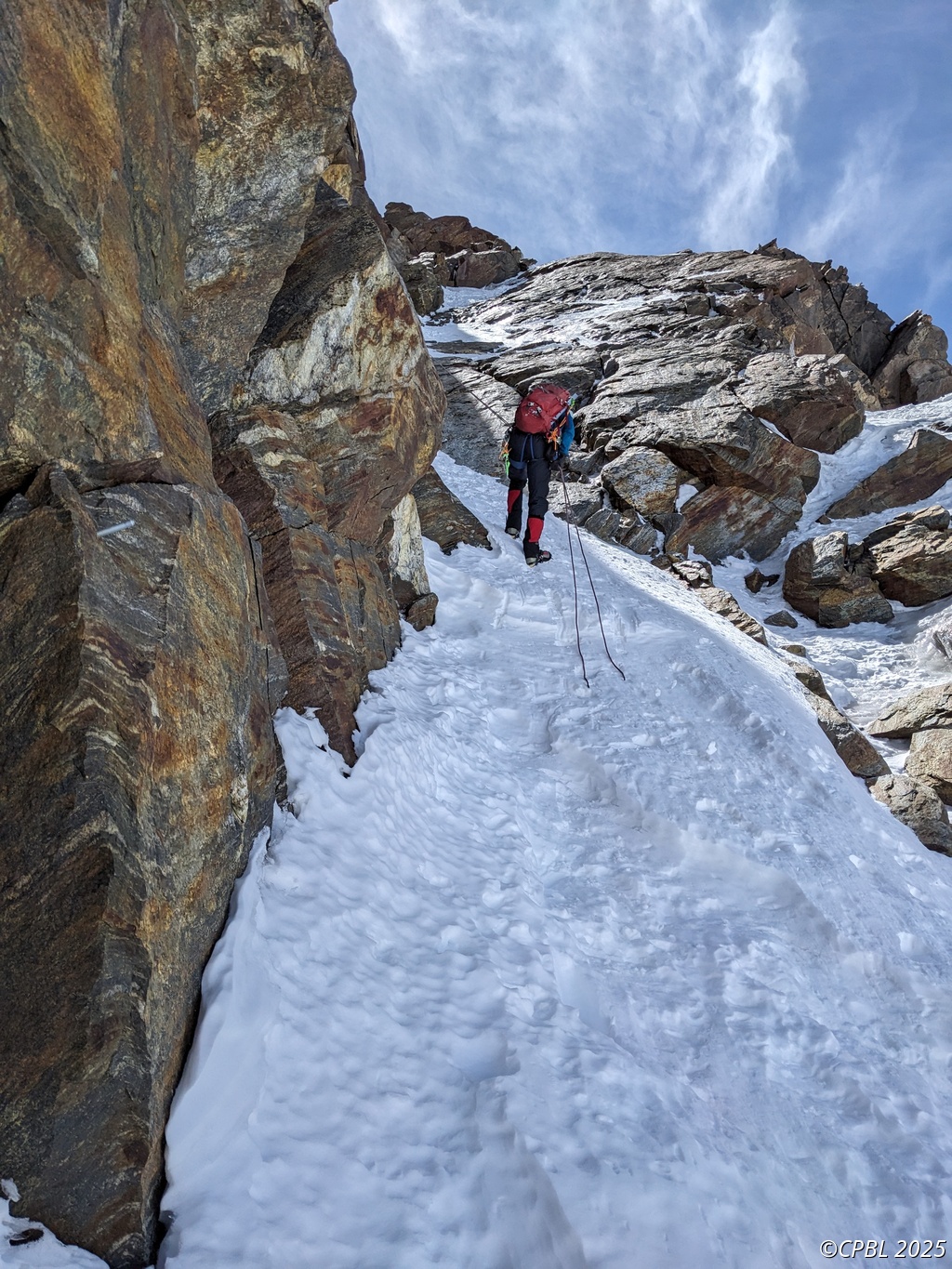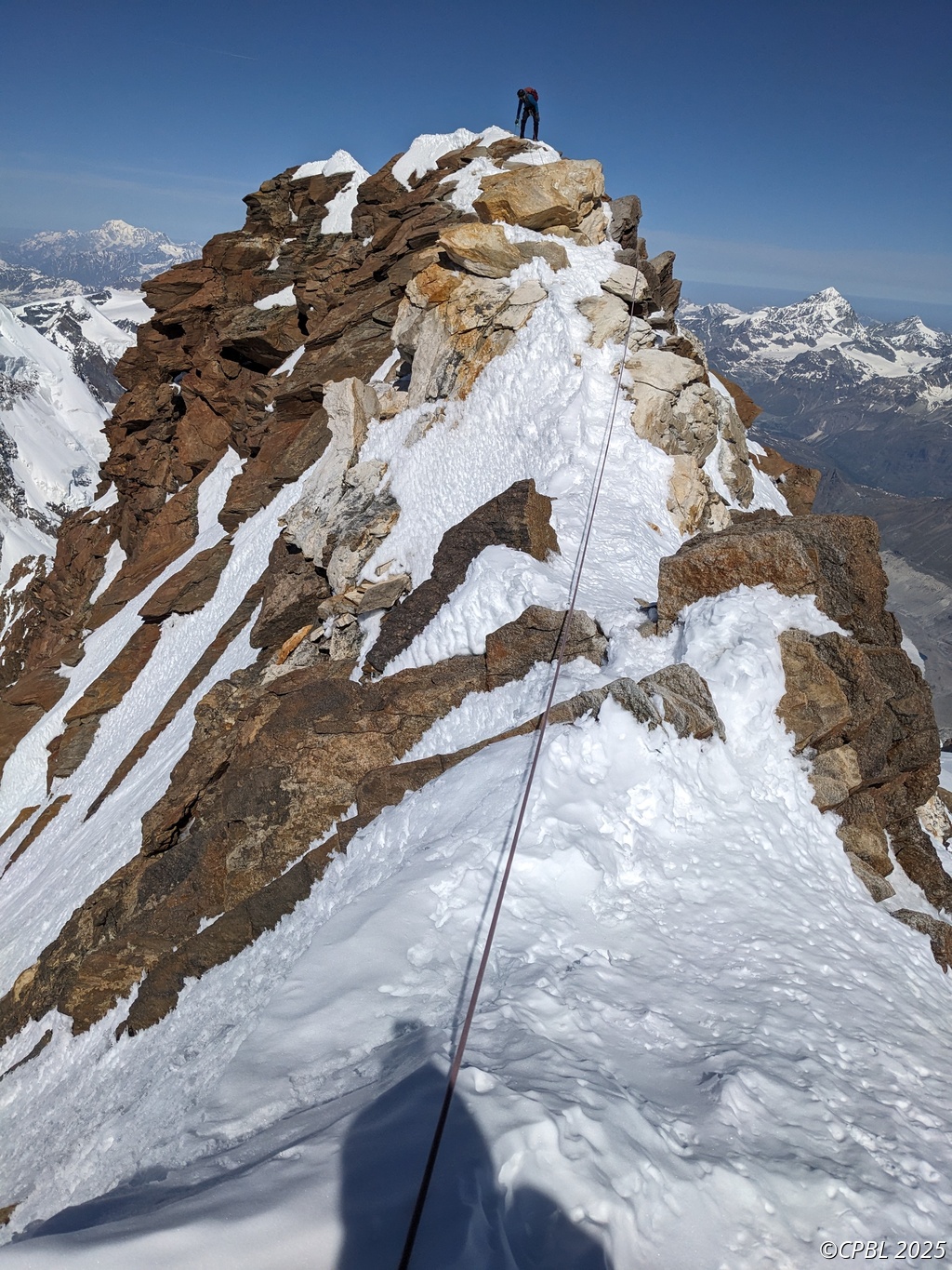 | Two or three more leads of mixed climbing along the final rock ridge ... |