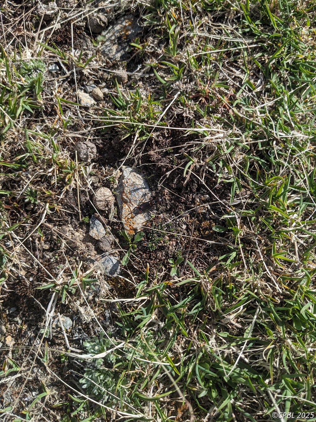 | When we ended up somewhere we should not have been, one leg of mine fell through into a crevasse, but I was able to get my showshoe out and remain on top. |