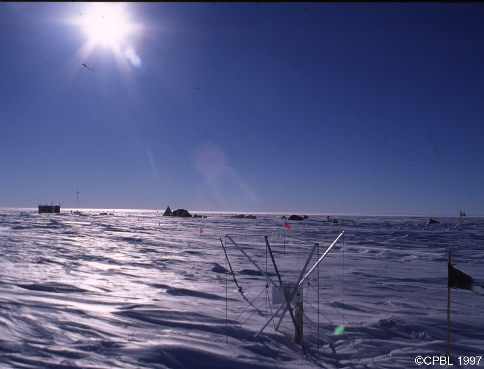 ![]() And here is our camp, AGO2, and a VLF antenna before my upgrade, hundreds of kilometers from Pole, at 2000 m on the Antarctic plateau. |